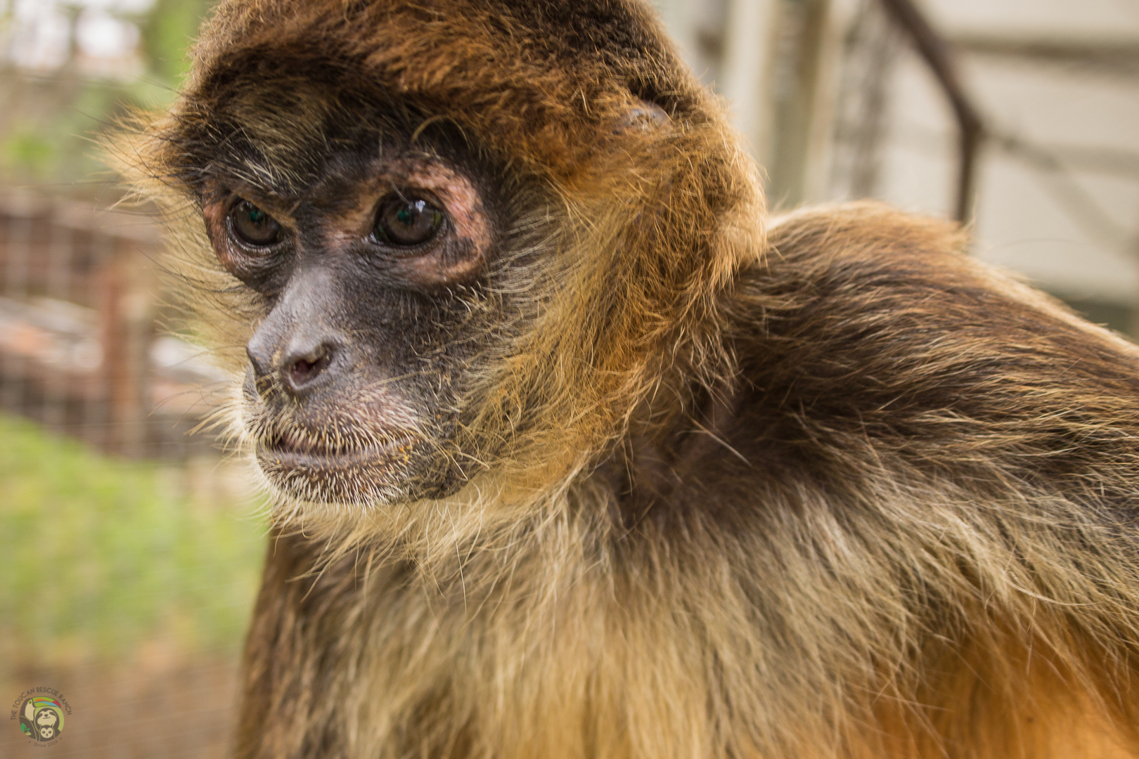 It’s difficult to not fear monkeys after being chased down by a group of macaque monkeys at the tender age of seven and, then again at the age of 20, being trapped in a bathroom by a large male patiently waiting for me outside the door. Needless to say, I’ve been traumatized by monkeys and held a fear for them my whole life. So you can imagine the day I arrived at the Toucan Rescue Ranch to see adult spider monkeys. I was quite surprised and very nervous. A few weeks went by and I plucked up the courage to begin helping with the spider monkeys morning and afternoon feeding. If I got a little too close, both Izzy and Noelia would reach through and grab chunks of my hair, taking my dignity with it. I was determined at this stage to conquer my fear and decided I would slowly work towards gaining their trust. In the afternoons, I would take them treats and after a period of time they started to warm up to me- Izzy in particular. I am now at the point where Izzy will anticipate my arrival at the enclosure and she will come down to greet me, following me as I manage their feeding and care. I’ve learnt that spider monkeys are very intelligent and can sense fear in people. As my fear disappeared the bond between us grew and I’m very grateful for having had this special time with her here at the Ranch.