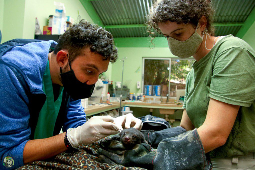 They managed to pry open the dog’s jaws to free her, cleaned her up as best they could, and rushed to the TRR clinic where rescuers were anxiously waiting. Doctors immediately examined her for wounds; and thankfully, the dog’s jaws seemed to have missed any major arteries. However, x-rays and scans are still needed to be sure, and beyond this, Kisses is looking at months of recovery. She did have some ticks on her that were removed however, overall, she is a healthy tayra.
