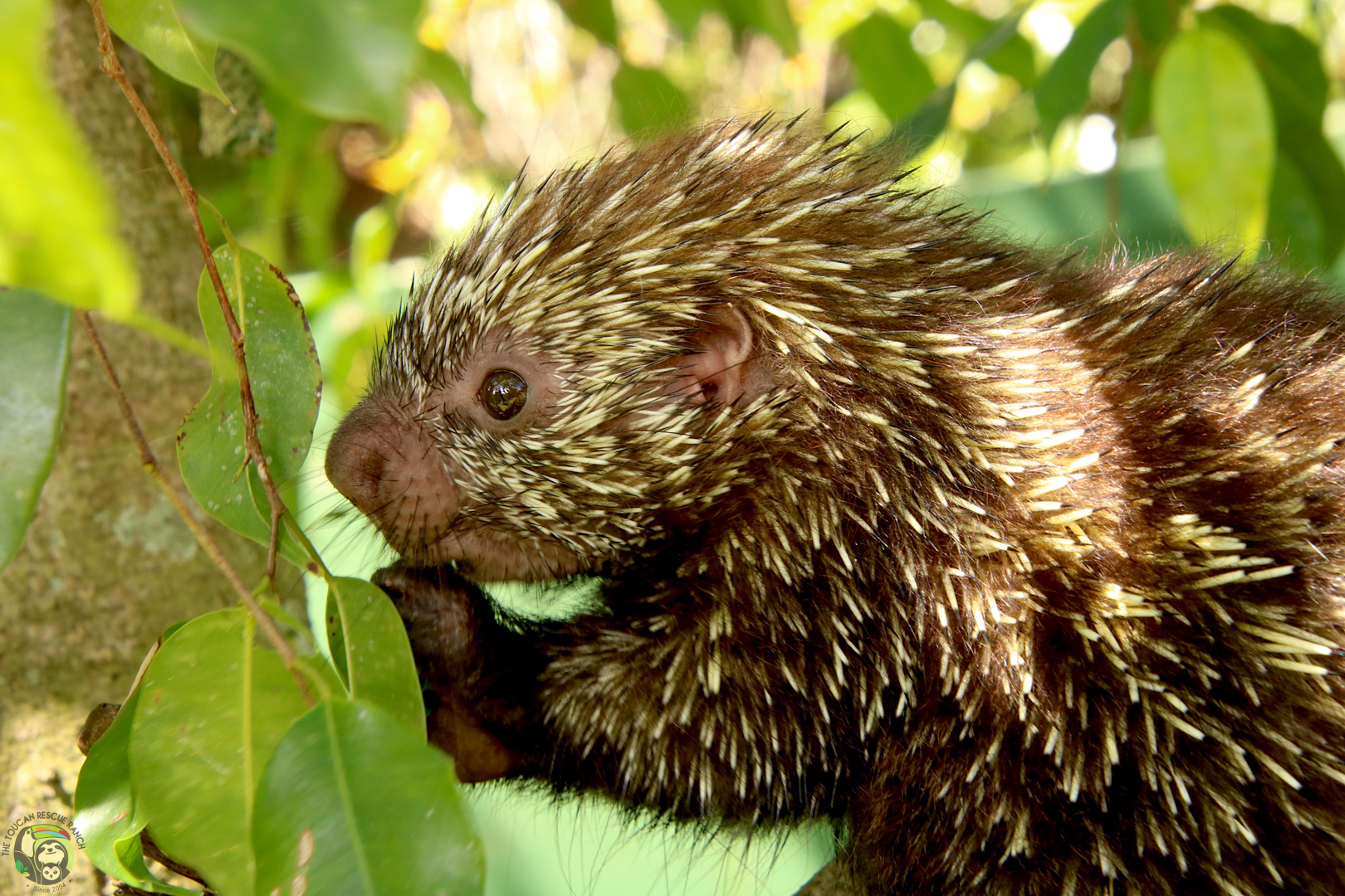 The good news is that BOTH Spud and Tater are healthy (other than Spud having some scrapes on his belly, which are healing nicely!). Both receive frequent, routine feedings, and they grow bigger and bigger by the day. Their spikey quills are just beginning to come in, which will replace some of their fluffiness as they develop. And now, they have also been moved to a small outdoor enclosure during the day, where they will practice using their prehensile tail, climb, and hopefully, gain some independence. Because, at the end of the day, Spud and Tater deserve a life in their rightful home – the trees!