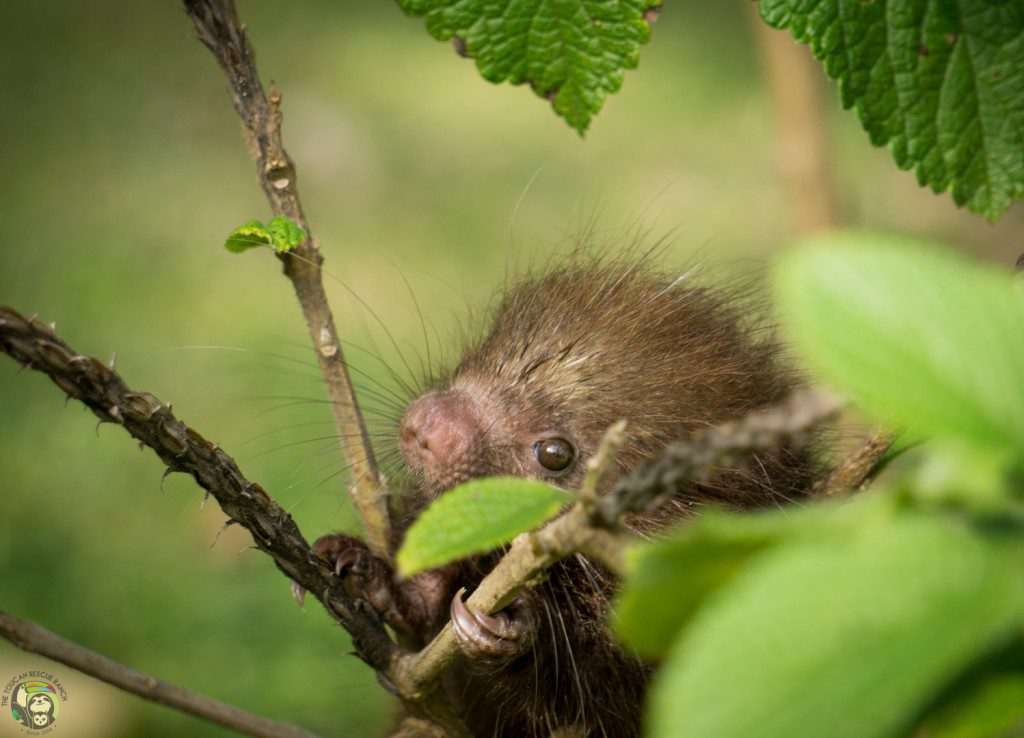 Spud was rescued by some kind individuals, who first noticed this well-camouflaged baby lying on the ground near the westside of the capital, San Jose, with no mama in sight. But they knew this little baby deserved a chance at life. A chance that – without a mother – he was not likely to get. Luckily, Spud’s rescuers were able to safely transport him back to Toucan Rescue Ranch, and thank goodness they did: Upon examining him, it was discovered that Spud is practically a newborn, weighing only a meager 184 grams. This lil’ guy is nowhere near ready to take on life alone – as baby porcupines are reliant on their mothers for survival during the first few months of life. But thanks to the quick thinking of some kind individuals, Spud is getting his chance at eventually being ready to do so.