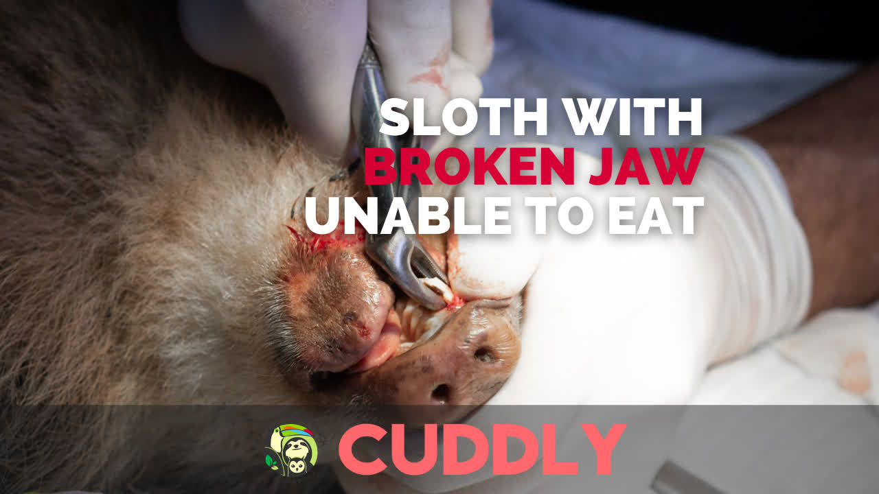 Dr. Chavarria had to drill into his jaw to insert a metal pin that would hold the two broken bone fragments together, immobilizing them so they can heal properly. Flash’s missing tooth was also an issue – Because sloths’ teeth continue growing, they rely on the top and bottom teeth to wear each other down, keeping them from getting too long. Because Flash no longer has his bottom premolar, we had to remove the top as well, to prevent it from growing too long and ultimately causing him pain and more problems.