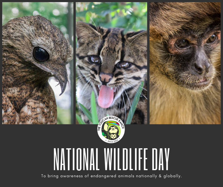 That is why National Wildlife Day (NWD), celebrated twice a year (today and September 4), is so important. The purpose of this holiday is to increase awareness of endangered wildlife all over the world and acknowledge facilities around the globe that support and promote the conservation of wildlife and the environment, such as Toucan Rescue Ranch (TRR). Since its creation by conservationist Colleen Paige in 2005, NWD has helped educate, inspire, and stir interest in people worldwide about the environment. This awareness is what leads to important impulses that can turn into strategies for solutions to current problems, such as the increasing amount of endangered plant and animal species.